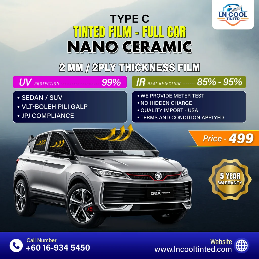 LN Cool Tinted, powered by a team of professionals and located in Selangor, provides expert tinting and coating services. Whether it’s for your vehicle, home, or office, we enhance and protect with care and precision. We focus on comfort, privacy, heat rejection, and long-term durability — giving every surface a five-star finish.